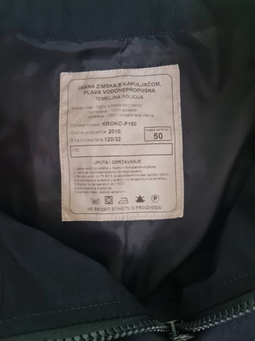 VODONEPROPUSNA, MODEL KROKO P-150, 100% POLIESTER, VELIČINA 50, NIKAD NOŠENA, SA POLICIJSKIM OZNAKAMA , cijena 200 eura