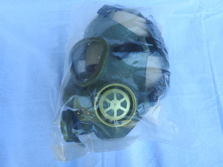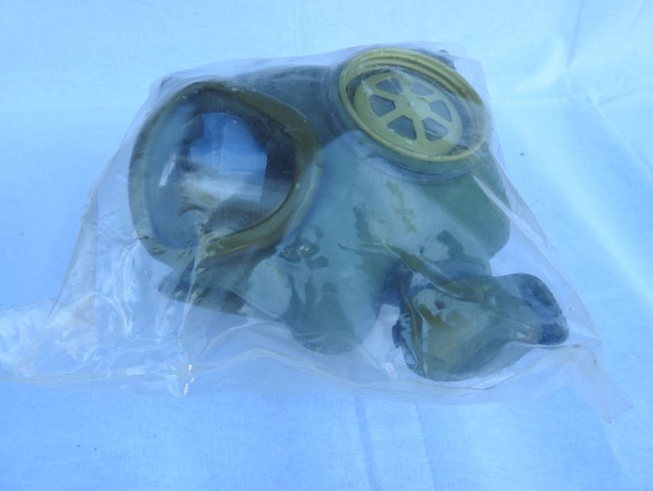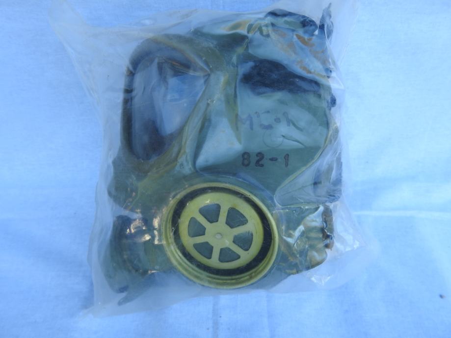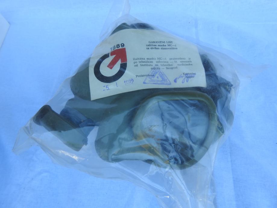 Originalna zastitna maska MC-1 proizvedena za civilno stanovnistvo, jos uvijek zapakirana u originalnu ambalazu s garancijskim listom.