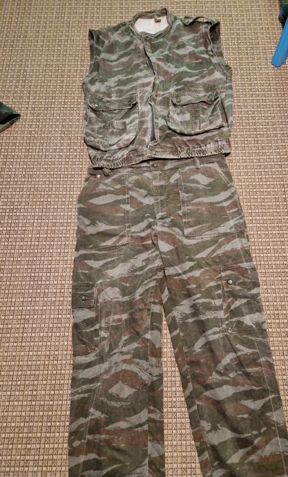 Prodajem RSK uniformu u tigar šari, hlače veličina možda 54-56, nema etikete, prsluk veličine 56. Ako se kupuje pojedinačno onda je cijena 20 eur kom. Javiti se preko njuškala ili SMS na 099 591 3207. Šaljem pouzećem.