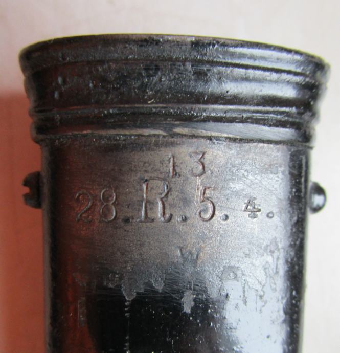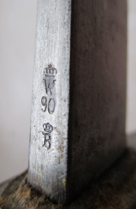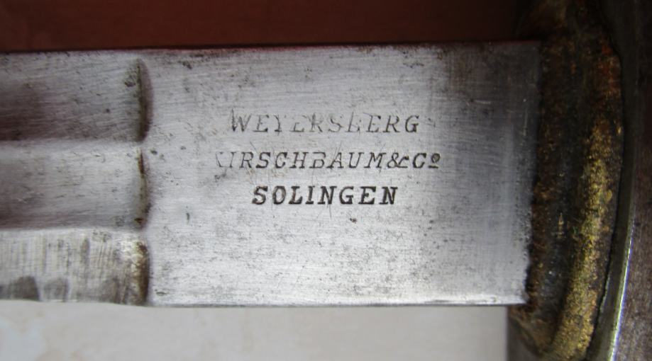 Sablja za pruske dočasnike, službeno oružje s prijemnom markicom W 90 (Wilhelm II kao kralj Prusije 1890.), korice s pukovnijskim žigom iz 28. pričuvne pješačke pukovnije