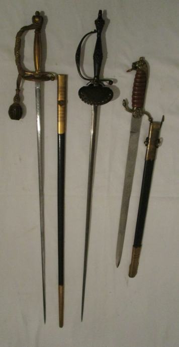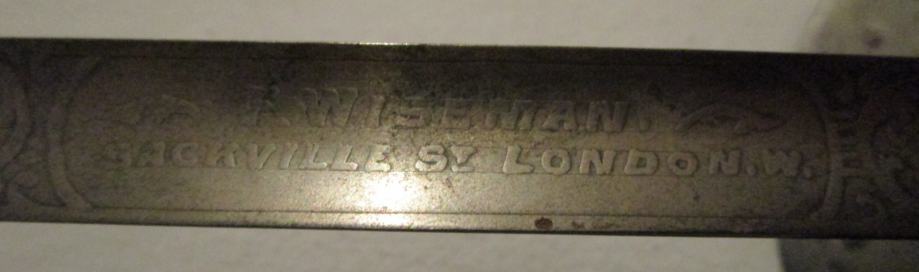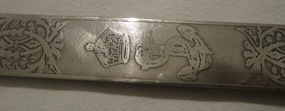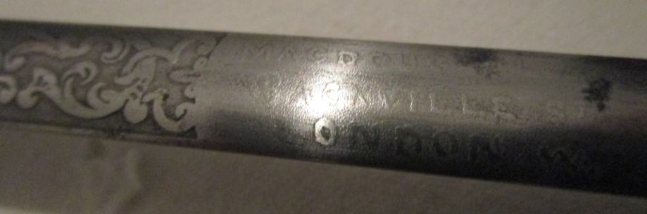 2 Engleska, pocrnjela časnička sablja, za dvorsku žalost, oko 1840., oštrica s oznakom londonskog proizvođača. Bez korica. 400 €.