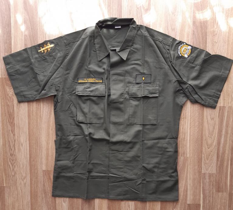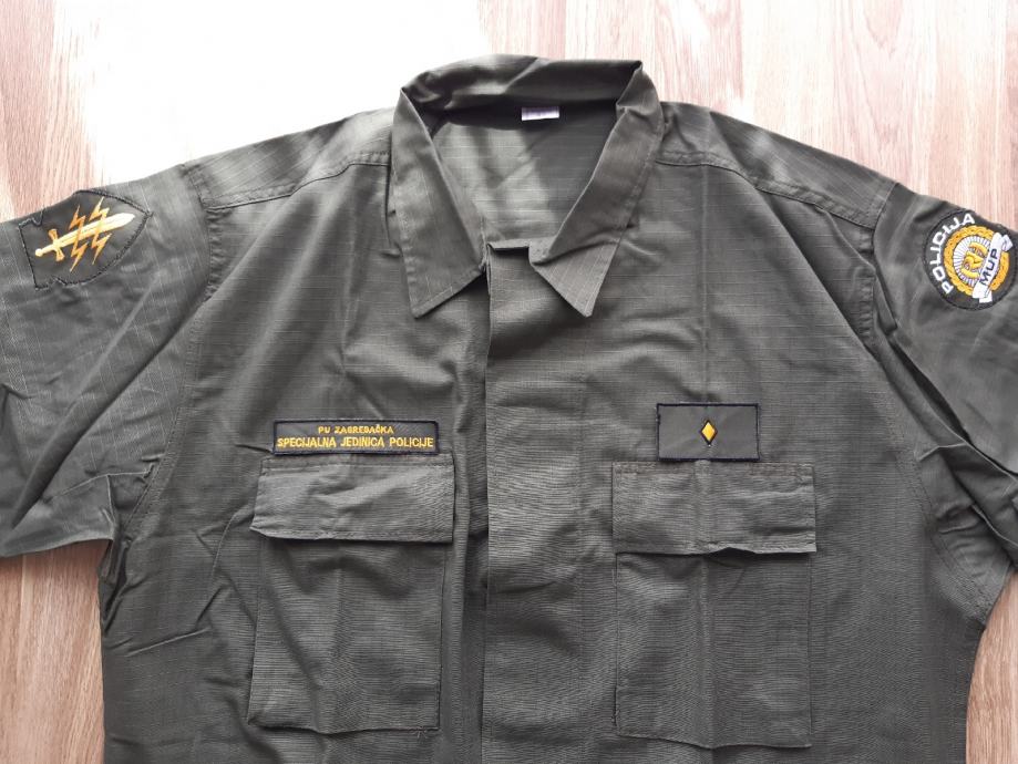 Nova košulja kratki rukav Specijalne policije iz domovinskog rata iz '90-tih godina sa četiri pripadajuče oznake.