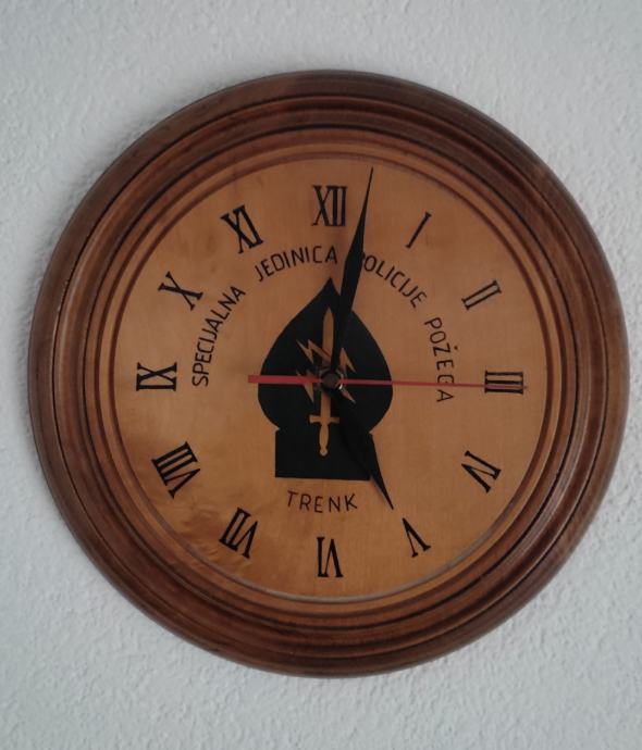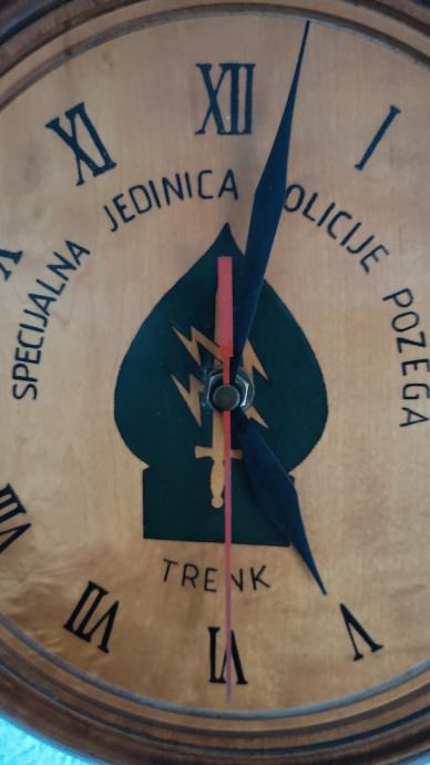 Mogućnost besplatne dostave u RH. Sat specijalne policije ispravan, točan i očuvan. Meterijal drvo, promjera 28cm.