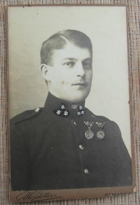 Stara ručno retuširana fotografija - kartonka časnika sa ordenjem