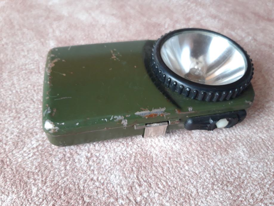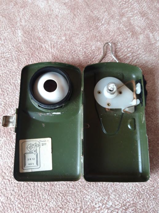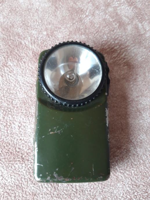 Stara Švicarska vojna svjetiljk7a, lampa - baterija. Ispravna je i u top stanju, koristi kvadratnu bateriju. Vrlo rijedak i vrlo kvalitetan primjerak. Cijena 30 eura. Mob 091 251 6616