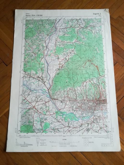 Stara topografska vojna JNA karta Zagreb 2. Mjerilo 1:50 000. Dimenzije 69x48cm. Karta je super očuvana i nije presavijana niti izblijedila. Cijena je fiksna. Na sms nemogu odgovoriti, najbolje bi bilo da me nazovete 099 687 5657 ili pošaljete poruku preko Njuškala.