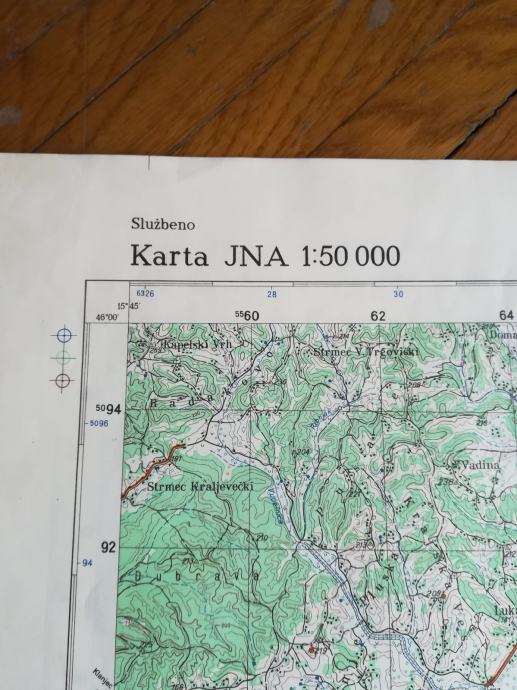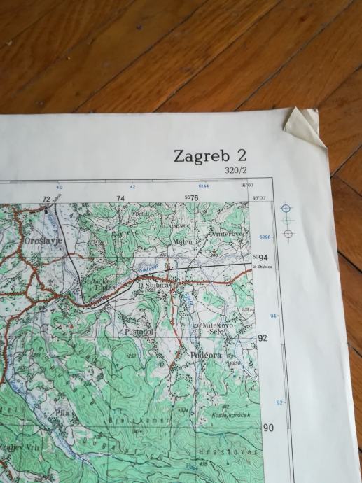 Stara topografska vojna JNA karta Zagreb 1:50 000, dimenzije 69x48cm,