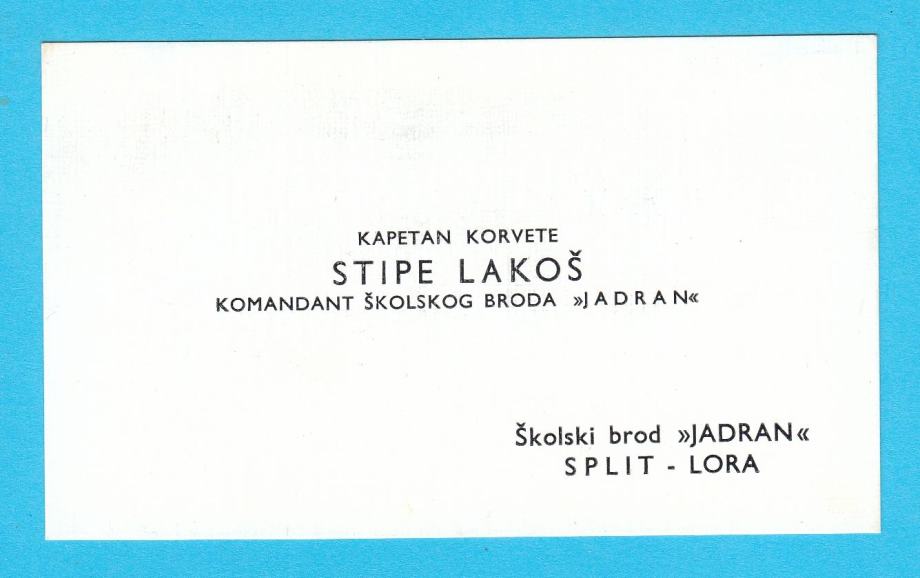 STIPE LAKOŠ - Komadant Školskog broda Jadran * vizitka vizit karta