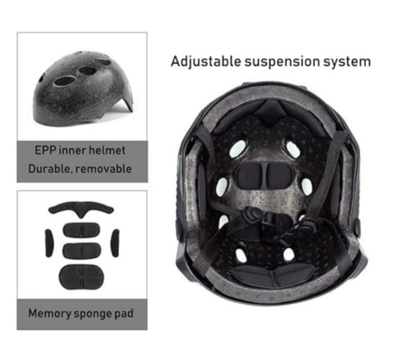 ▶PODESIV DIZAJN: Gumb na stražnjoj strani kacige omogućuje korisniku brzo podešavanje, prikladno za opseg glave od 52-64 cm (20,5-25,2 inča). Naočale i maska opremljene su fiksatorima koji se mogu podesiti prema različitim vodilicama kako bi se postigao stabilniji učinak. ▶VIŠENAMJENSKI DIZAJN: Nekoliko čičak ploča na vrhu, sa strane i stražnjoj strani kacige omogućuje dodavanje više zakrpa (na primjer, svjetla za preživljavanje, zakrpe za moral) prema željama korisnika. Praktična kopča za remen s bočnom šinom/naočalama i zaštitni poklopac za NVG omogućuju brzo spajanje ili otpuštanje uređaja, poput sustava za noćno gledanje, taktičkih štitnika za uši, svjetiljki, sportskih kamera itd. ▶KUL I SAVRŠENA KOMBINACIJA: maska, kaciga i naočale surađuju u jedinstvenoj cjelini, pružajući korisniku potpunu zaštitu za glavu i štiteći glavu i lice od ozljeda u paintball igrama. Kacige, štitnici za lice i naočale mogu se koristiti pojedinačno.