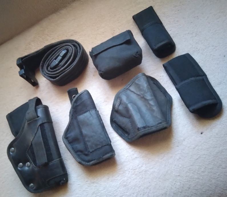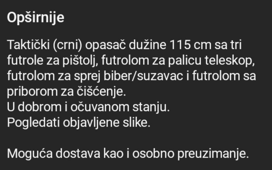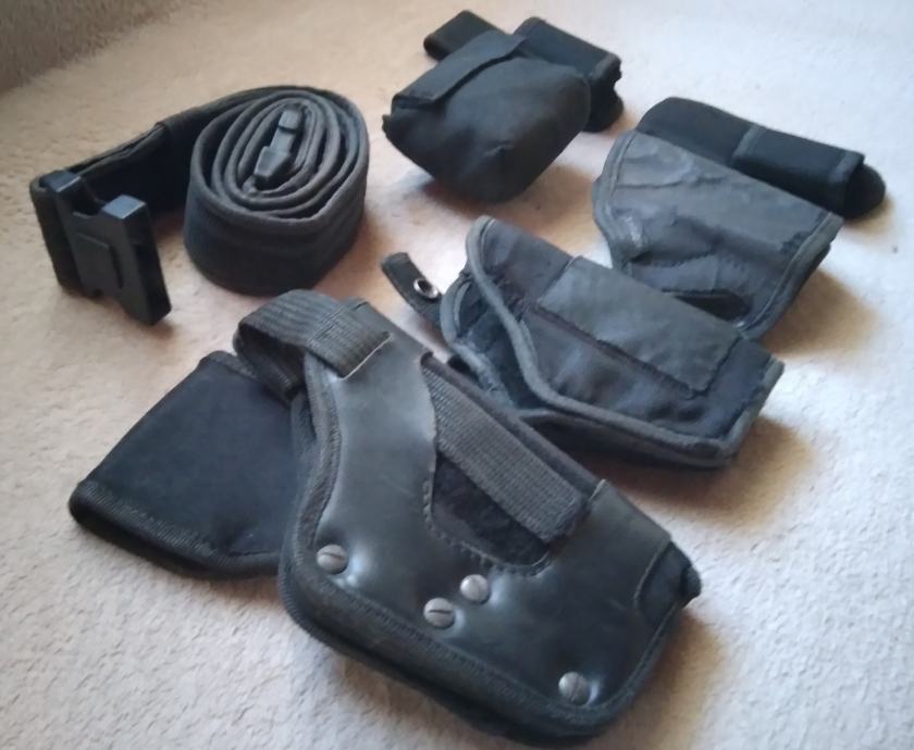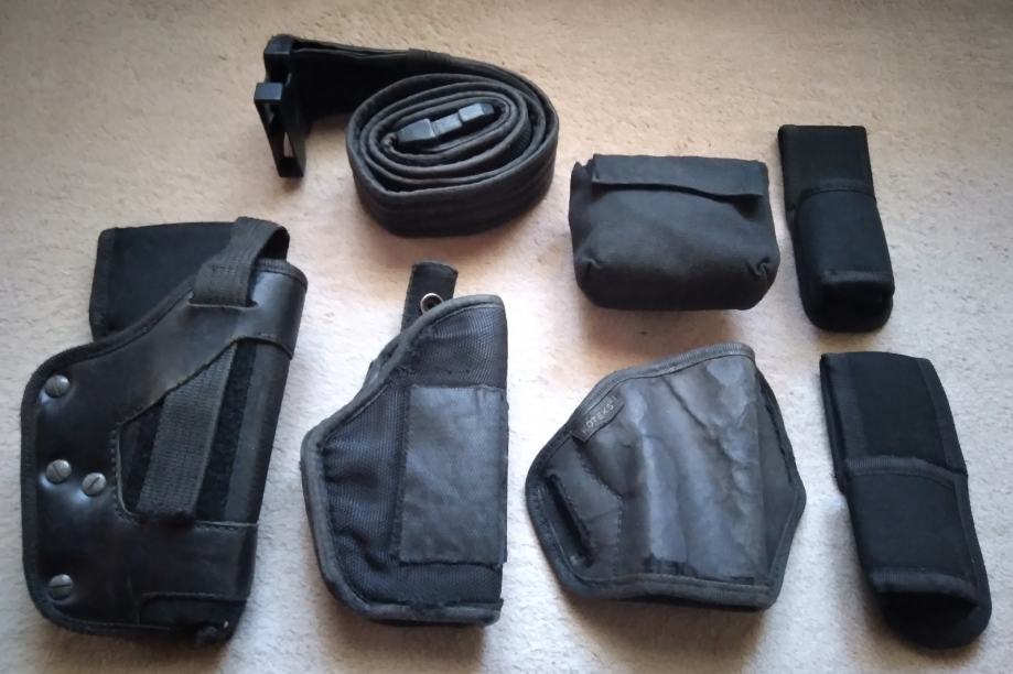 Taktički (crni) opasač dužine 115 cm sa tri futrole za pištolj, futrolom za palicu teleskop, futrolom za sprej biber/suzavac i futrolom sa priborom za čišćenje.