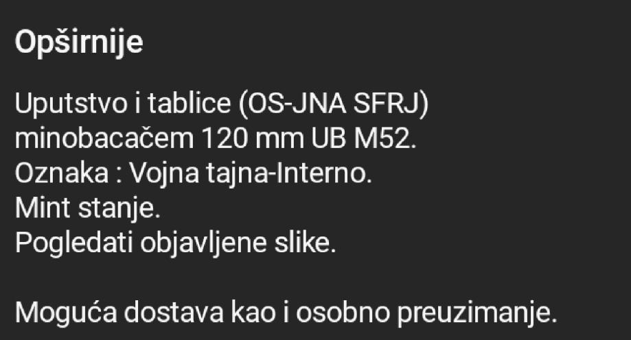 Uputstvo i tablice (OS-JNA SFRJ) za gađanje minobacačem 120 mm UB M52.