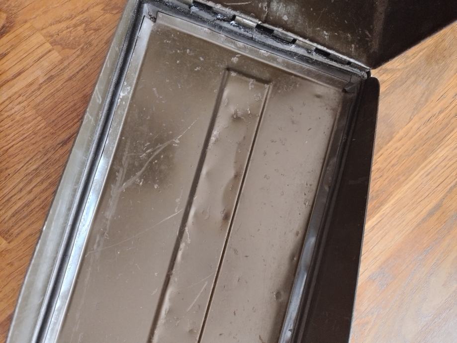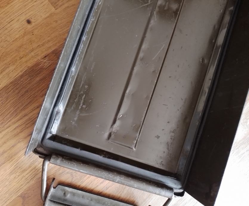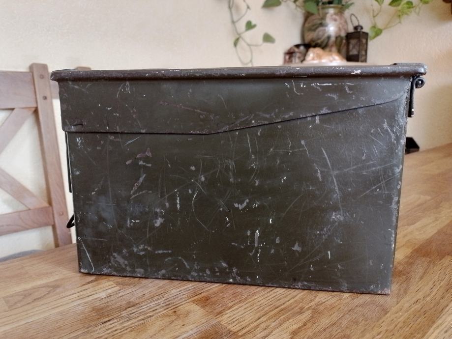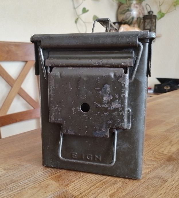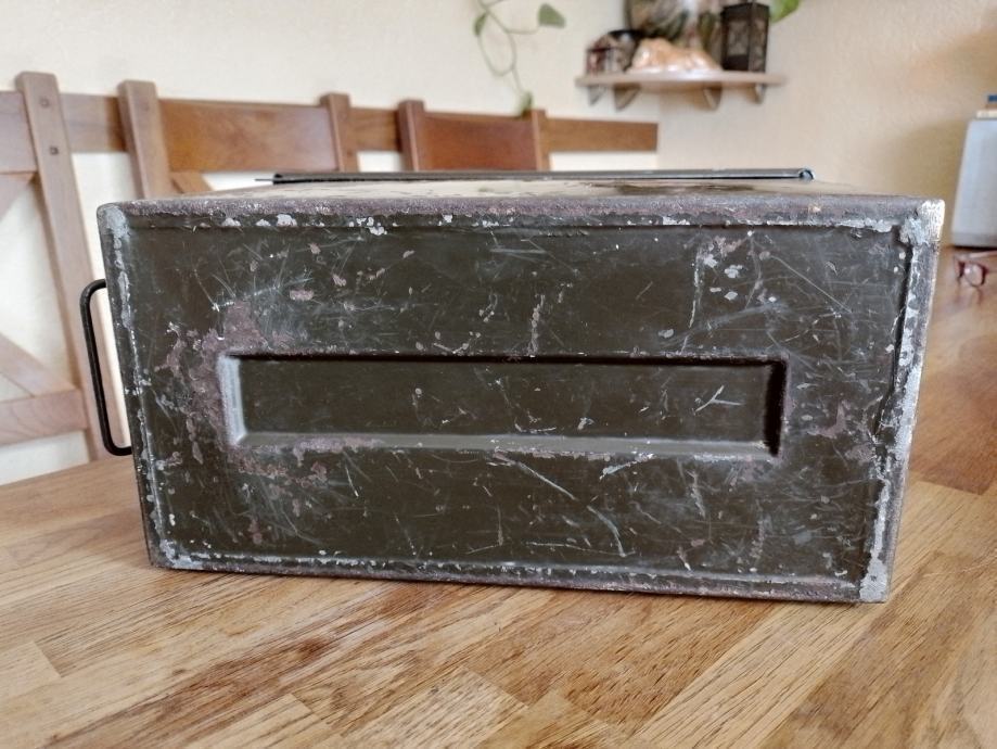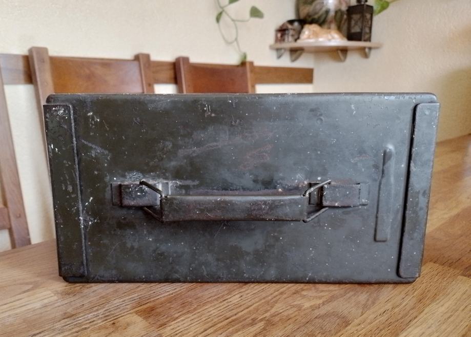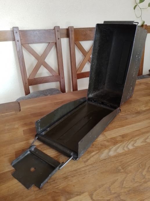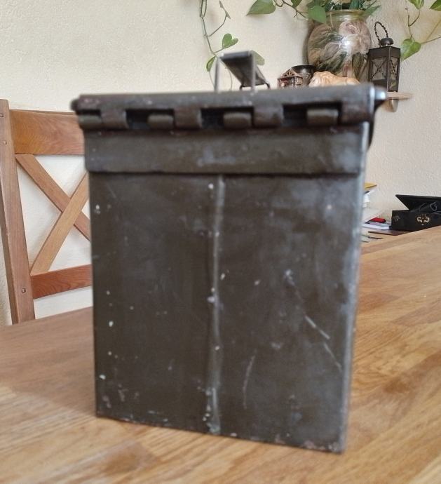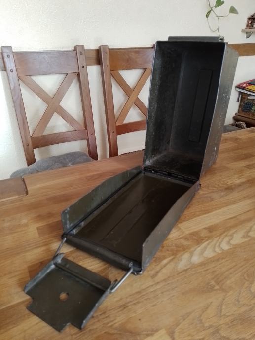 Dimenzija:31cm x 15.6cm x 18.6cm,nigdje progrižen,iznutra super.IMA DIHTUNG(što je rijeđe) tako da zatvara i dihta u stotinku milimera(čak i prejako).Dobar sanduk-slanje nakon uplate predmeta na račun