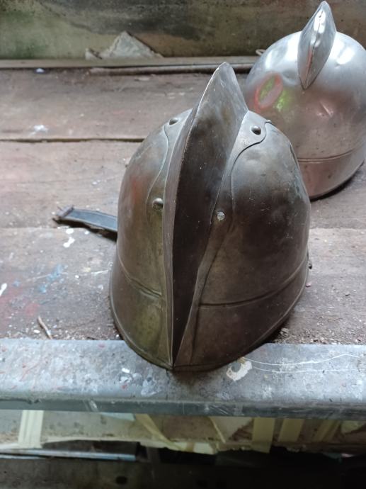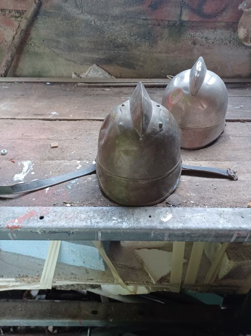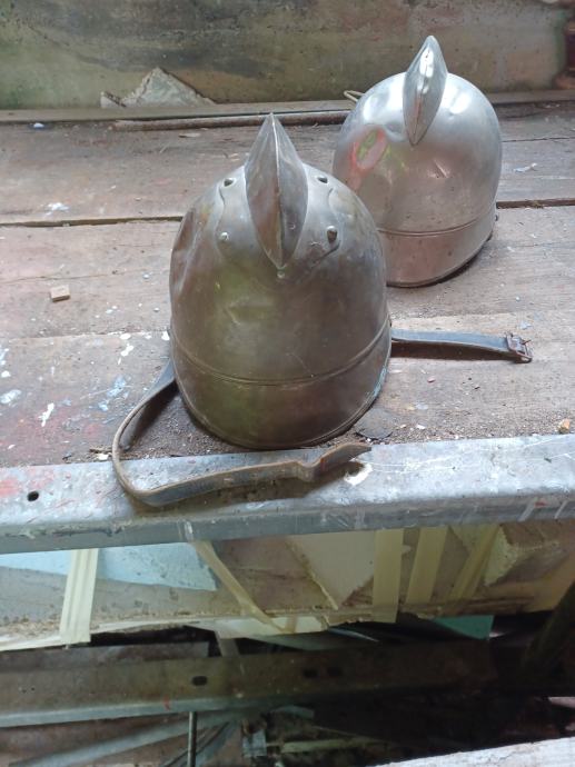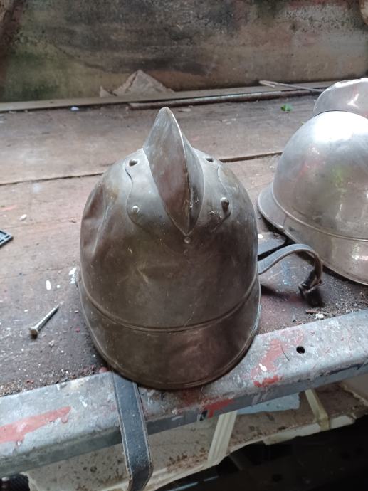 Starinska mesingana vatrogasna kaciga.Pocetak 20 st.Stanje kao na slikama.Moze zamjena za bajonete.
