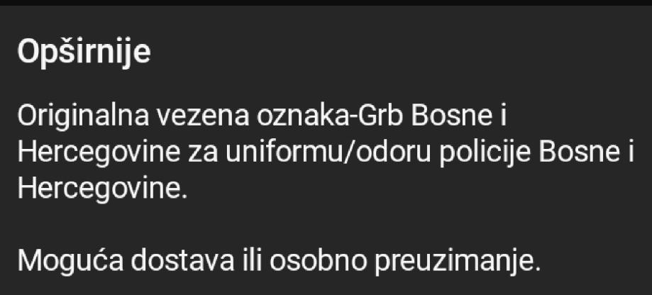 Originalna vezena oznaka-Grb Bosne i Hercegovine za uniformu/odoru policije Bosne i Hercegovine.