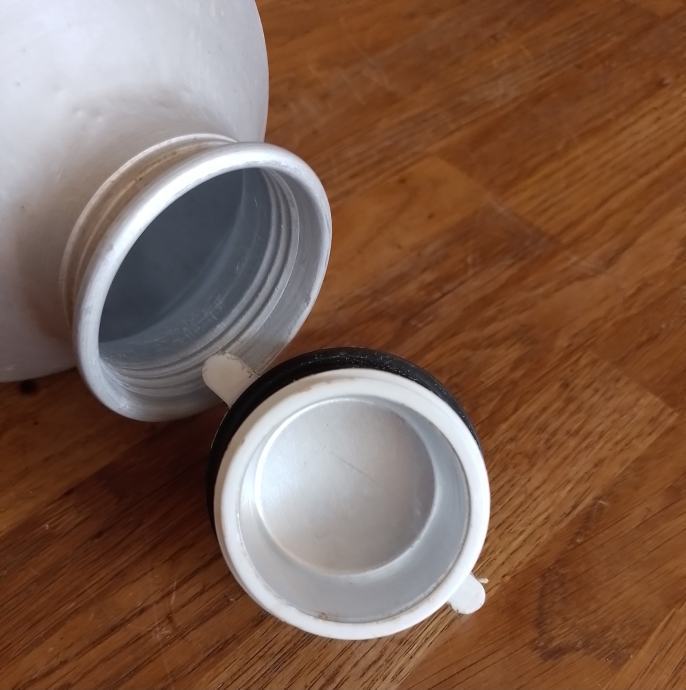 Visine 24.3cm te promjera 11.4cm,aluminijski uložak i u čepu,vjerojatno ww2(bila u kontejneru wermahtove gas maske)