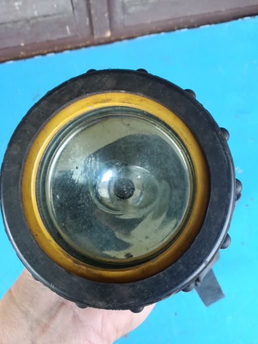 Vojna ili željezničarska inžinjerska svjetiljka tj lampa. Ima oko 3 kg. Na žaruljici je cijela nit. Glava se može šarafiti za fokus svjetla, a na kraju je šaraf tj poklopac za utor za punjenje. Nema nekih vidljivih oštećenja. Bateriju koja je ugrađena u svjetiljku nisam isprobao. Cijena je fiksna. Na sms nemogu odgovoriti, najbolje bi bilo da me nazovete 099 687 5657 ili pošaljete poruku preko Njuškala.