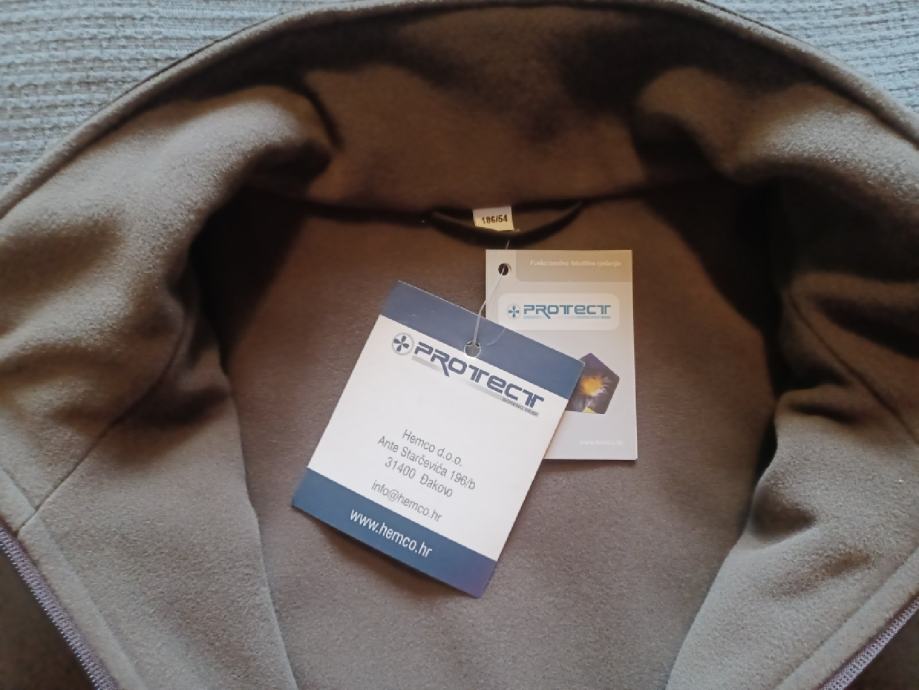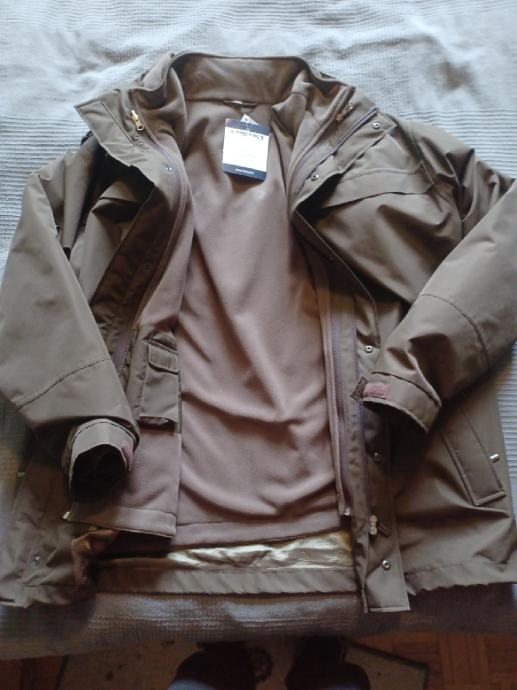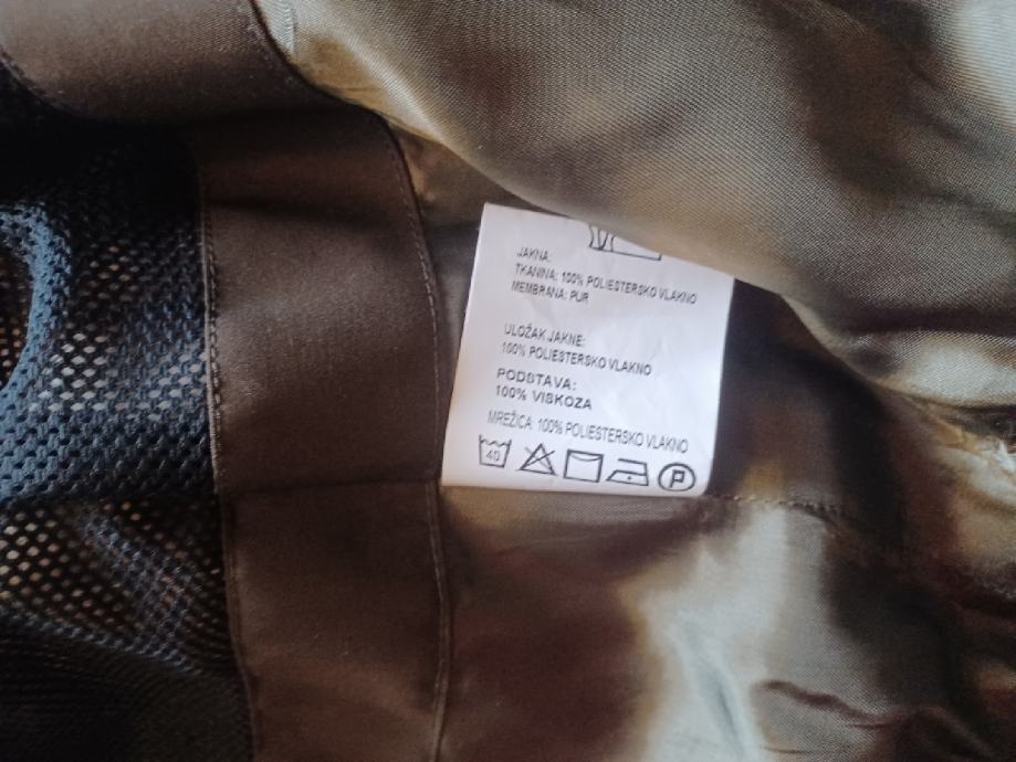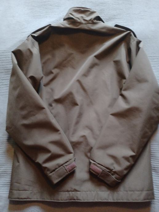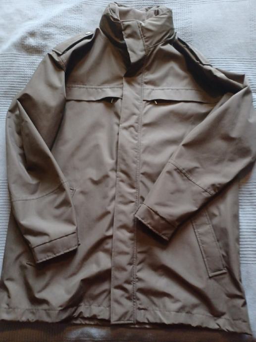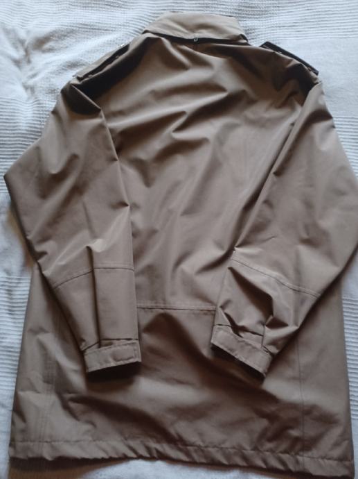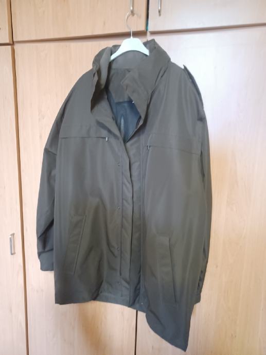 Službenu novu vodootpornu vojnu jaknu koja se sastoji od dva dijela, podjakne i nadjakne koji se mogu nositi neovisno i u kompletu, zavisno od vremenskih uvjeta prodajem. Podjakna dužine 75, širine 60, širine ramena 53, dužine rukava mjereno od ramena s vanjske strane 65 cm. Nadjakna dužine 94, širine 67, širine ramena 57, dužine rukava mjereno od ramena 67 cm. Nadjakna ima kapuljaču spremljenu u ovratniku.