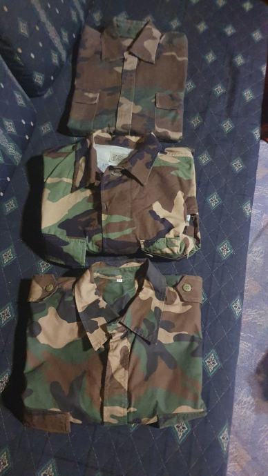 Prodajem vojnu jaknu mislim da je xl i majicu L, tri kosulje, dva para hlaca xl, djemper od mornarice,i kozni kajis