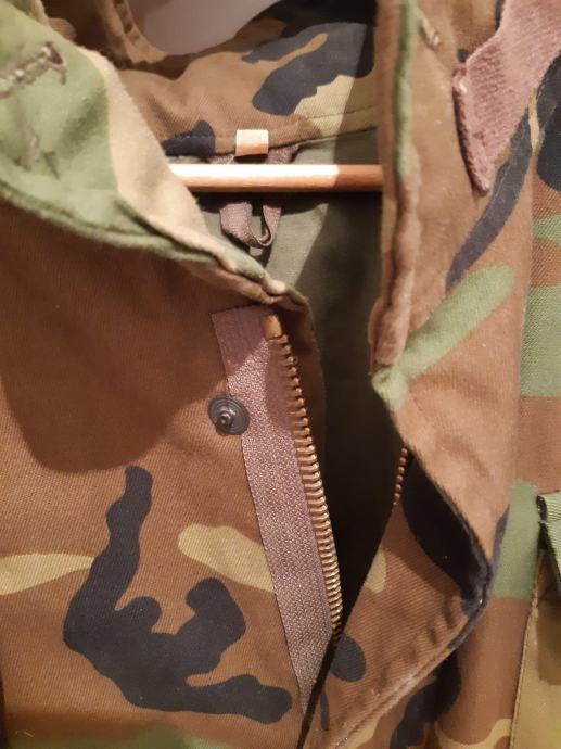 Prodaje se vojna jakna iz Domovinskog rata. 1991. godina. Kratko nošena. Očuvana. Kao nova. Jakna je u woodland kamuflaži, sa postavom, kapuljača je smještena u okovratniku. Kopče, patentni zatvarači, čičak trake su besprijekorni. Broj 50. Sve je vidljivo na fotografijama. Iz 1991. godine. (HV)