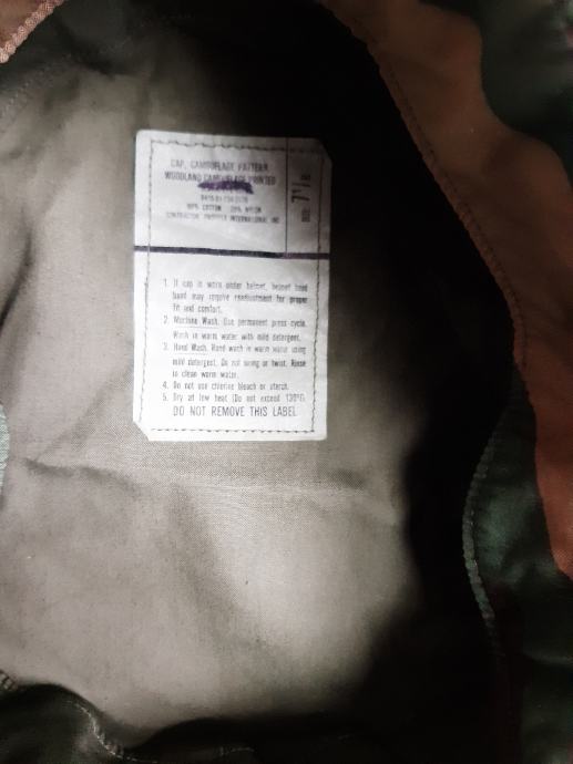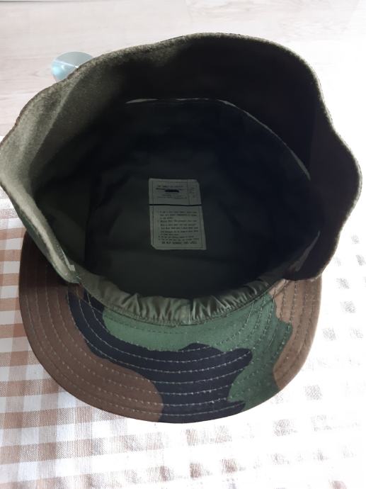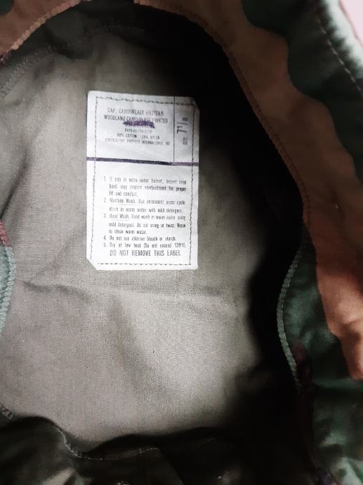 Prodajem američke vojne kape zimske, maskirna woodland. Zimsko platno. Origalne vojne etikete. Kape su dio odore M 65 vijetnamke ili ALPHA-e. Dva komada. Jedna je broj 7 ⅛, obujam glave 57 cm. Druga je broj 7⅜ ili 58 cm. Kape su nove i nekorištene. Rijedak model u oglasniku. U unutrašnjosti kape nalaze se preklopnici (štitnici) koji se izvuku i tako štite od niske temperature i buke oruđa. Vidjeti foto!