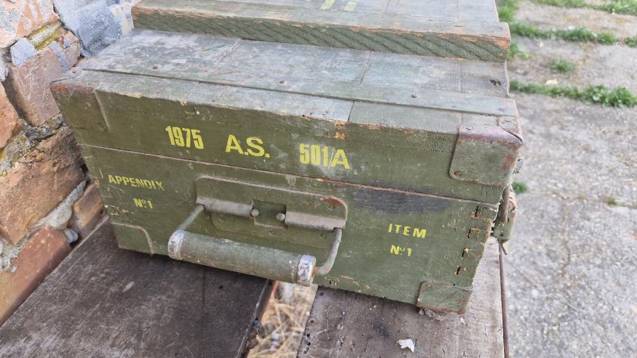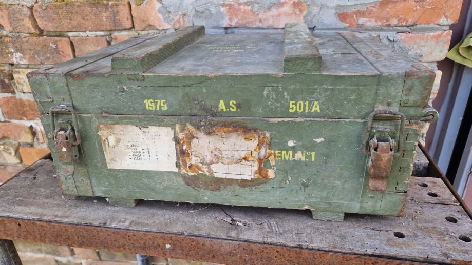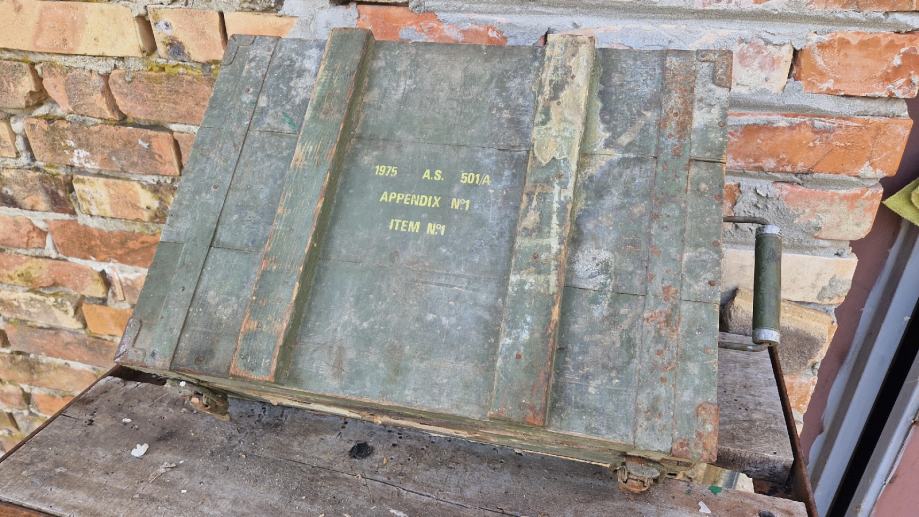 Kutija iz JNA. Za odlaganje stvari u radioni i slično.. Nije trula i u raspadu samo je prašnjava.