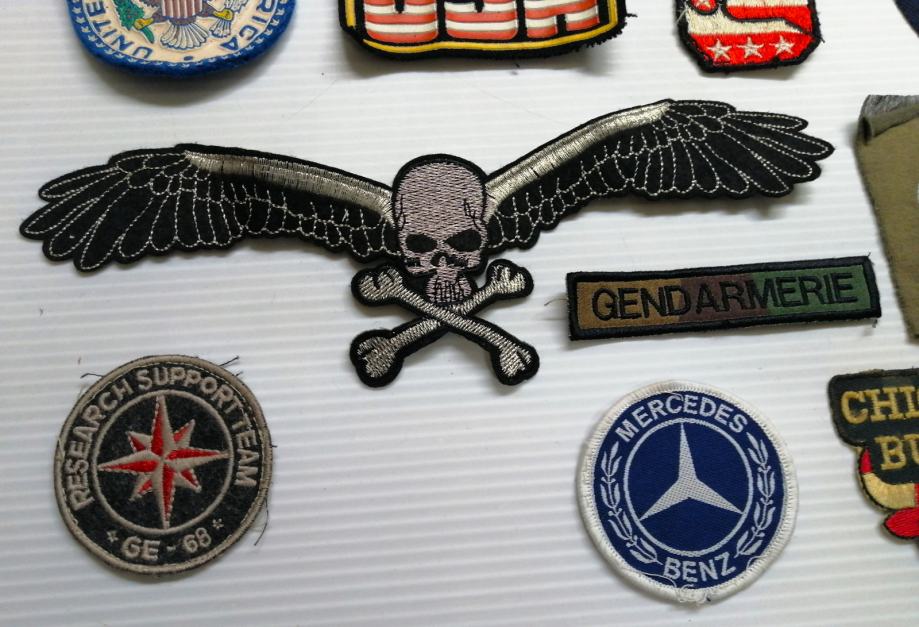 Mrtvačka glava sa krilima (leđna moto oznaka) 8€.