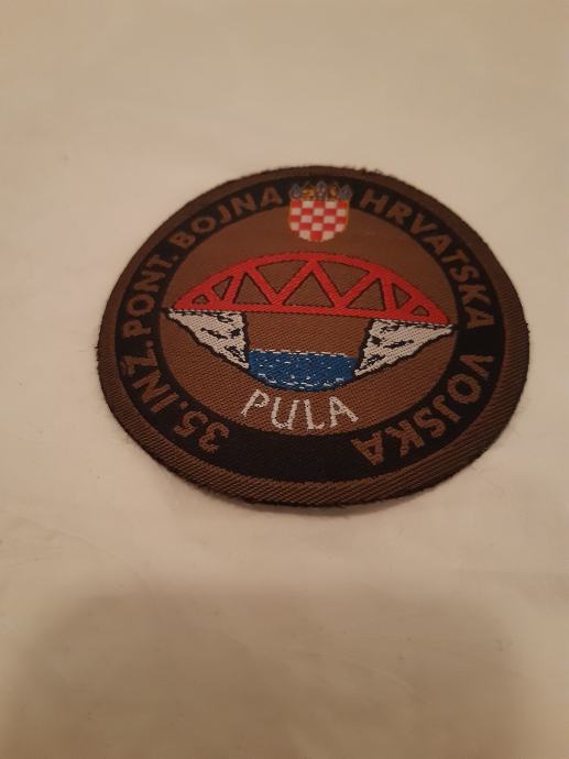 Platnena ramena oznaka, prišivak HV/OSRH, postrojbe: 35. inžnjerijsko- pontonske bojne HV, Pula. Promjer 9 cm. NOVO.