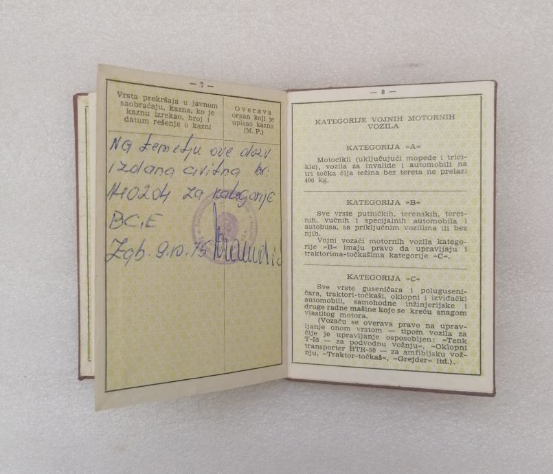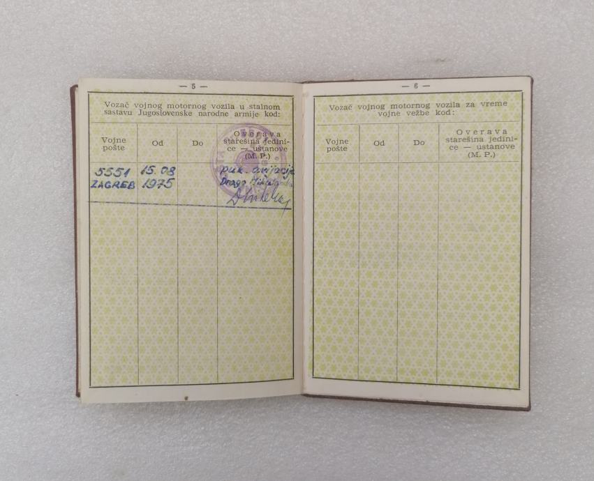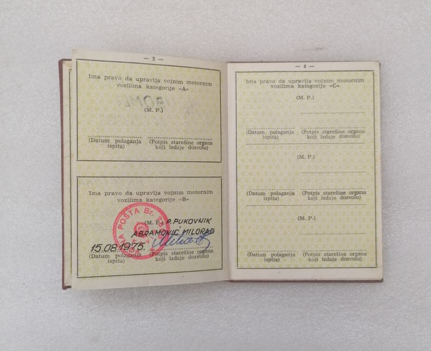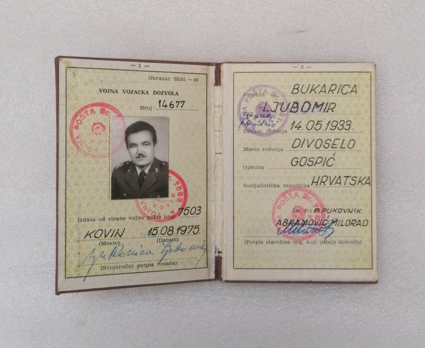 Vojna Vozačka Dozvola JNA - 1975. Kovin - Vlasnik iz Gospića