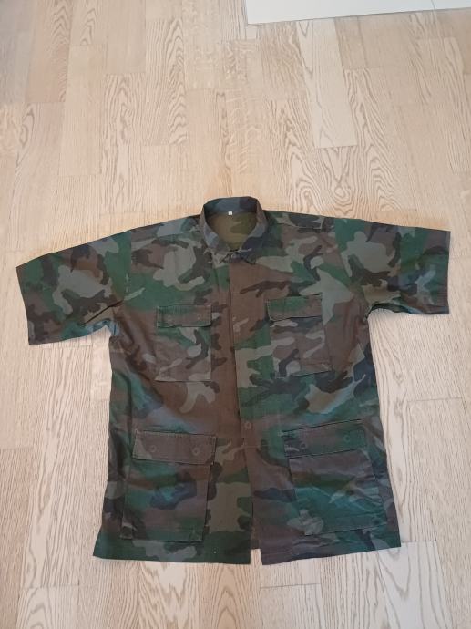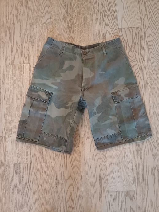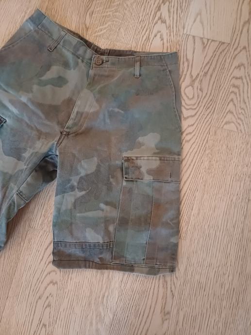 Vojne maskirne kratke hlače. Čvrsti materijal sa posravom. Obim struka cca 82 cm. Očuvano. Vidi foto. Za dodatnih 10 eura možete dobiti maskirnu košulju, kratkih rukava od istog materijala. Kosulja br. 54.