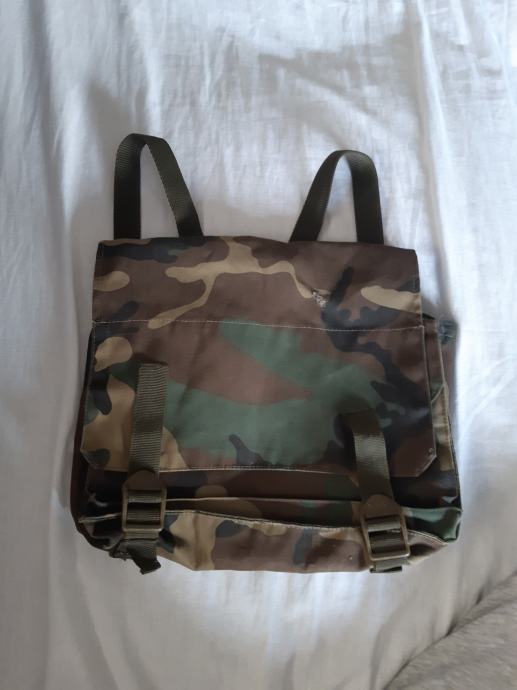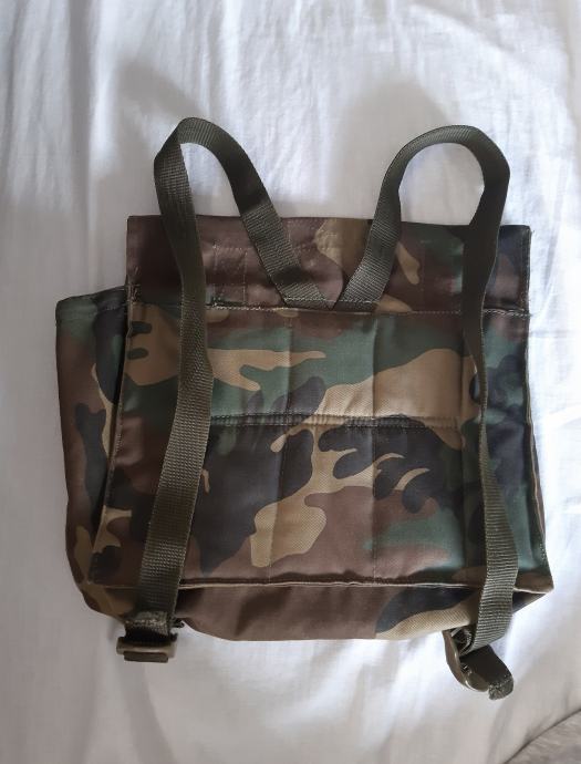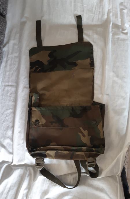 Prodajem manji vojni ranac, ruksak HV. Početak Domovinskog rata. Wodland camouflage. Rabljeno. Mini izdanje. Dimenzije 30 x 25 cm. Rijetko. Prikladno za mlađe osobe i djecu, jer su naramenice kratke. Stanje vidljivo na foto: vidjeti foto. Moguće i dodatne fotografije.