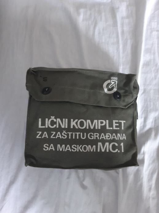 Vojni komplet za ABKO zaštitu građana, NOVO, maska MC-1 i filter novi u foliji. Idealno za kolekcionare. Veličina je S (srednja), za obim glave do 60 cm, prligodljivo.