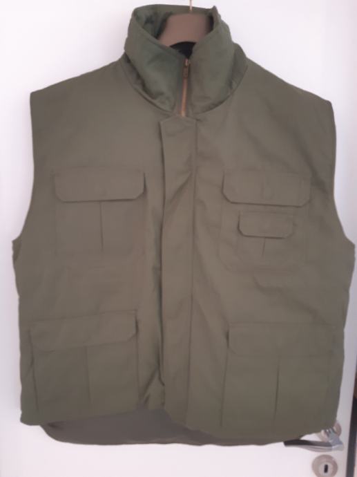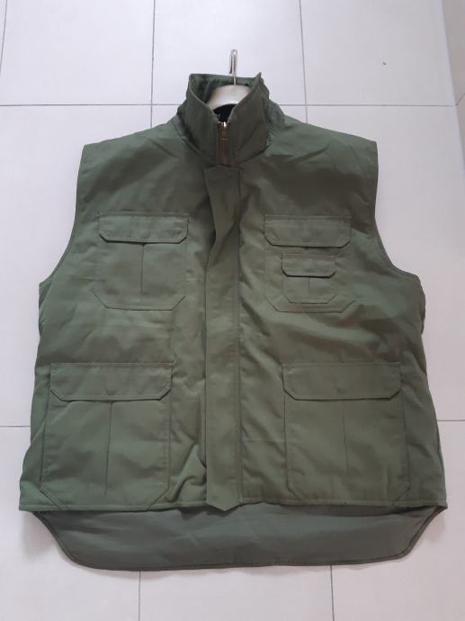 Prodajem vojni zeleni zimski termo prsluk, NOVO, iz Domovinskog rata, od specijalne policije. Prsluk je praktičan i sa puno korisnih džepova. Donji džepovi su dvostruki: prednji na kopčanje, bočni otvoreni. Odlična termo postava. Idealan za lov, ribolov, airsoft i za sve aktivnosti na otvorenom. Zimski. Veličina XXL (54-56).