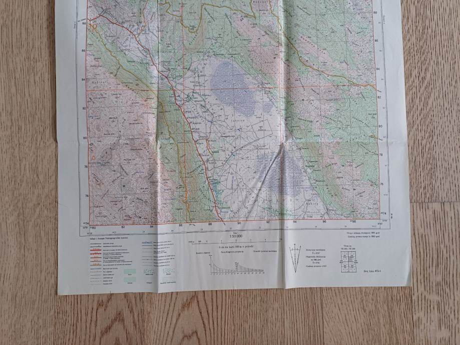 Vojni zemljovid, sekcija Glamoč 3. JNA. Vojnogeografski institut 1981. Sekcije zemljovida korištene u operacijam Hrvatskih snaga 1994./1995. Stanje kao novo.