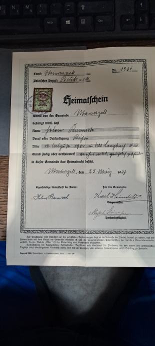 Radi se o austrijskom dokumentu kojim je opština potvrđivala da određena osoba ima Heimatrecht (pravo pripadnosti toj opštini). To pravo je bilo važno za: