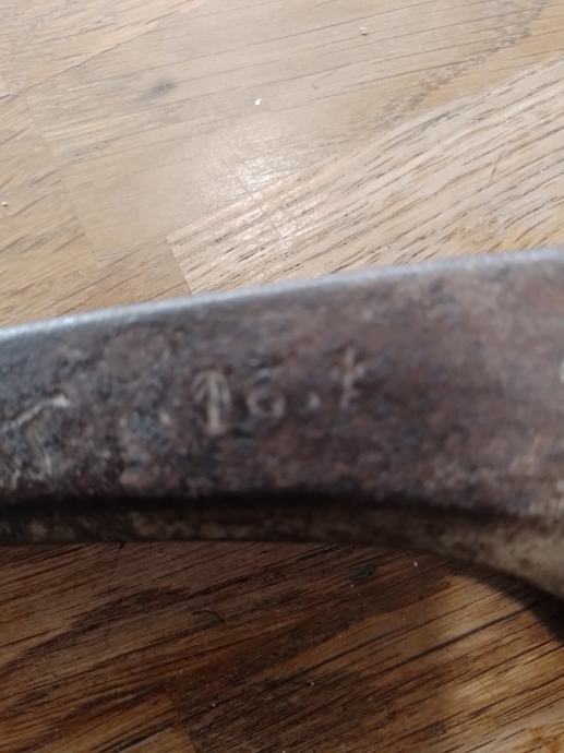 Dužina metalnog djela 33.2cm,serijski broj,možda i dva,na špicu oznaka(teško za uslikati zbog starosti)pronađeno nečišćeno stanje-kolekcionarski primjerak-(slanje nakon uplate predmeta na račun)