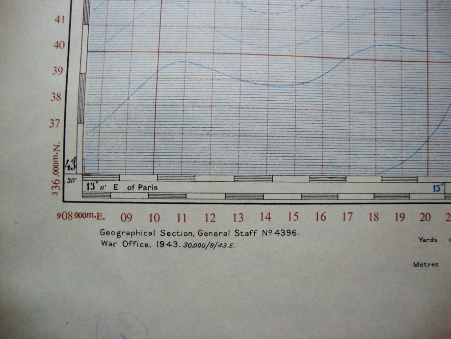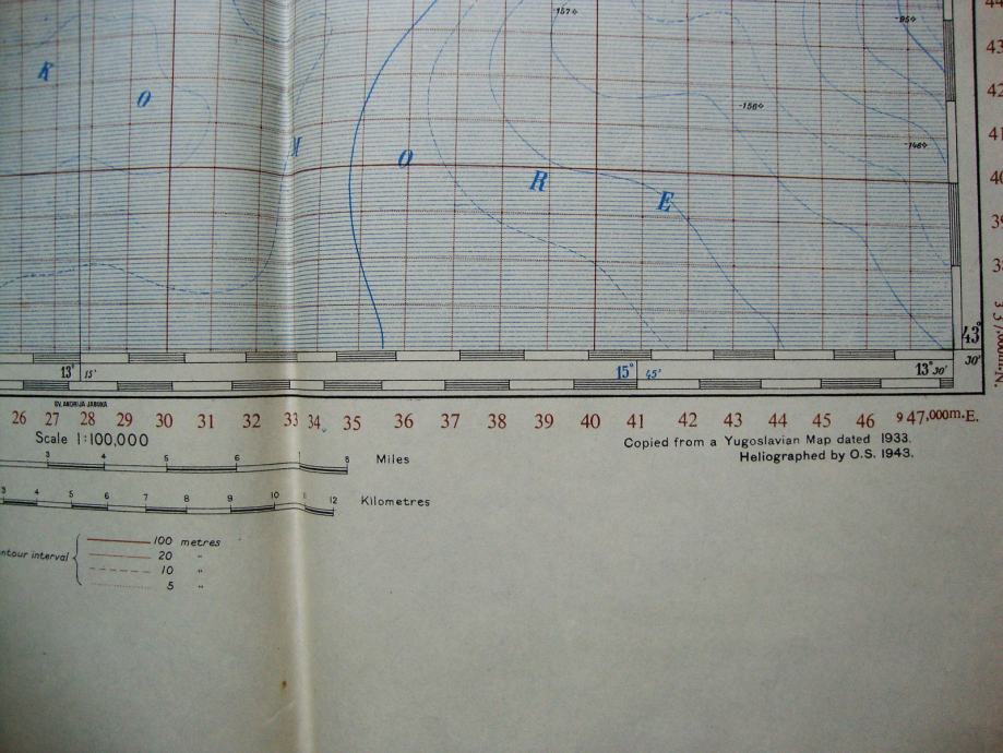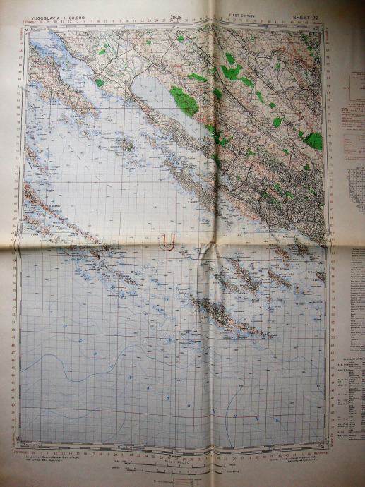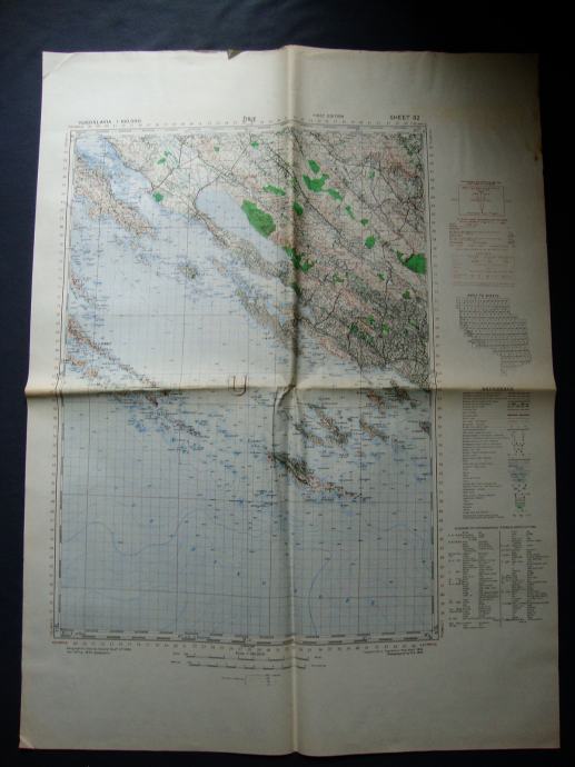 Velika karta Žirje iz 1943. dimezije : 57,5 cm x 78,5 cm