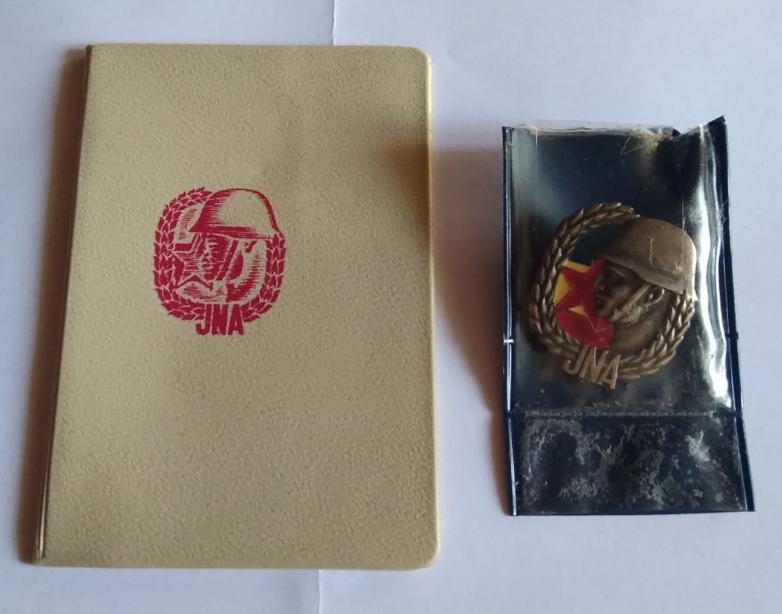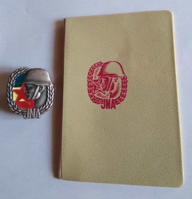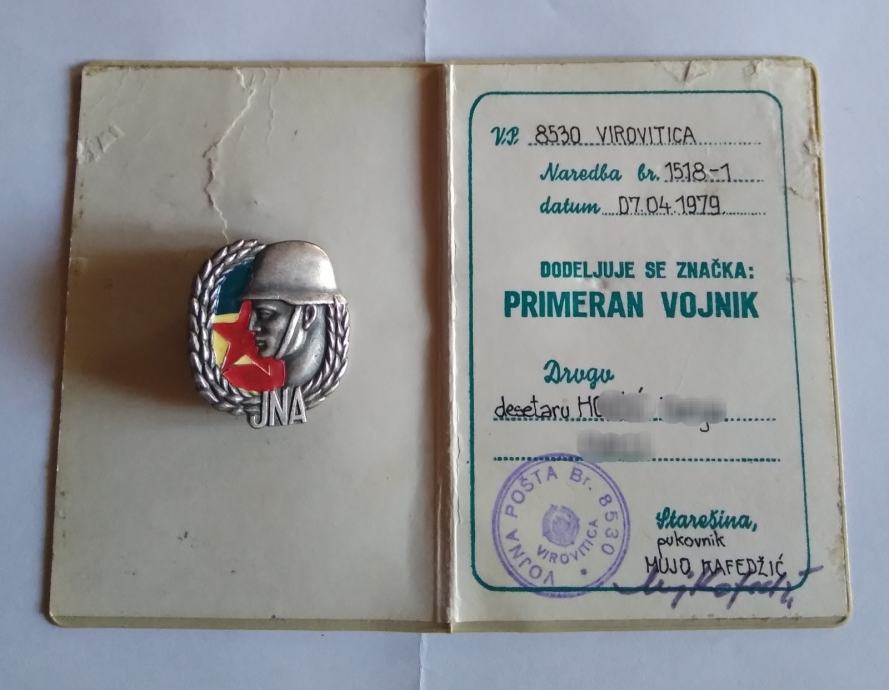 Značka "Primjeran vojnik" JNA SFRJ sa ukazom za vojnika (desetara/desetnika) kojem je dodijeljena.