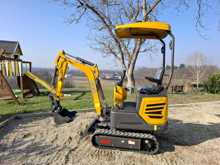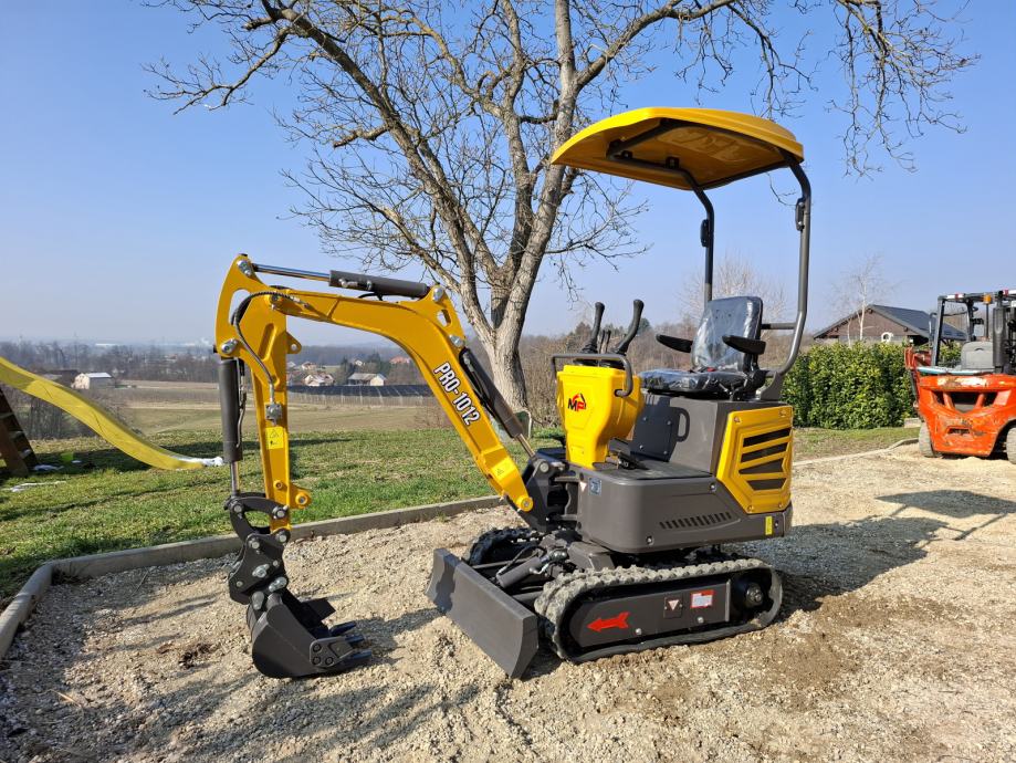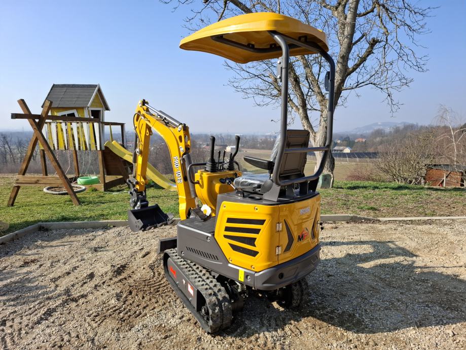 Mini bager MP PRO-1012 je robustno in kakovostno izdelan mini bager zasnovan za manjše izkope in tam kjer večji ne zmorejo. V pomoč vam bo pri postavljanju ograje, za kopanje temeljev, izkopi za manjše škarpe ter razna vrtna dela. Majhna velikost in preprost dizajn omogočata enostavno uporabo in servisiranje naprave. Posebna kompaktna oblika in zložljiva streha omogočata prevoz bagra v kombiju ali na manjši prikolici.