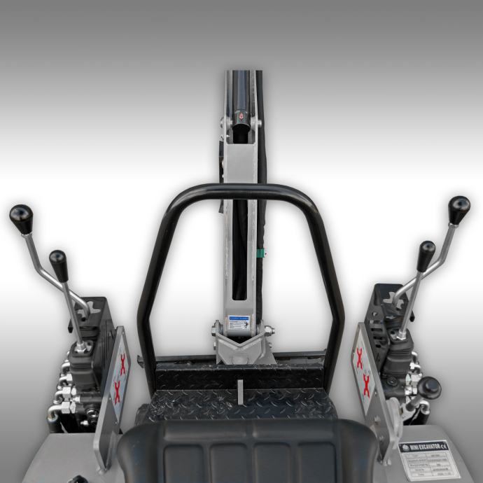 Sklopivi roll bar s integriranim pokrivačem za kišu, robustan, hidraulički spuštajući raonik i intuitivno, jednostavno rukovanje idealno zaokružuju niz značajki ovog mini bagera.