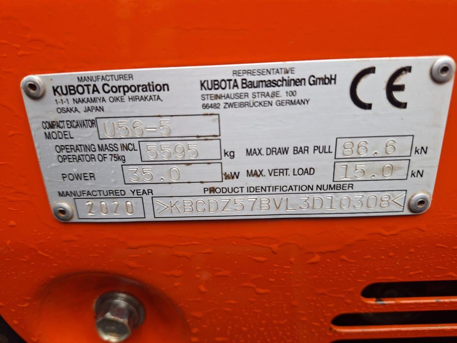 Prodam bager Kubota U56-5, teža 5.595kg, klima, Powertilt z Lehnhoff MS03 hidr. brza spojka, crveni servisni ključ, CE dokument...