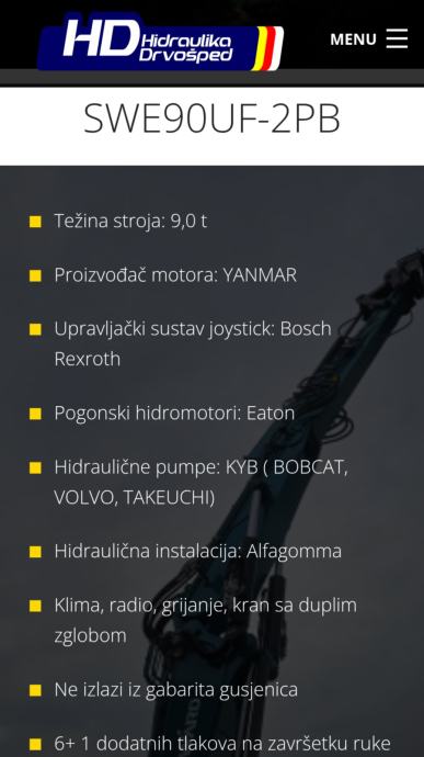 Marka: Sunward; Model:rovokopač SWE90UF DUPLI ZGLOB ; Stroj je težak 9.000 kg.