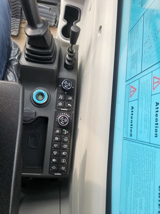 Stroj ima :klimu, radio uređaj;led rasvjeta, kran sa duplim zglobom
