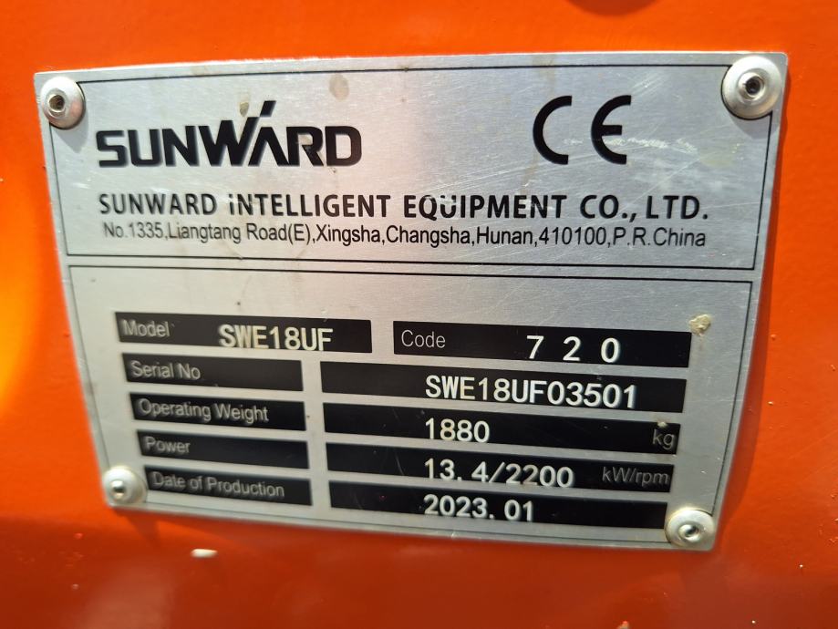 Prodam bager Sunward SWE18UF, Yanmar motor, g. 2023, samo 263 radnih sati, širjenje gusjenica, dvije brzine, led svijetla, CE dokument, bager ko nov, može i nove korpe, prihvati, brze spojke, Martin, Lehnhoff, CW ....
