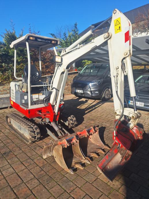 Prodam bager Takeuchi TB016, Yanmar motor, širjenje gusjenica, dvije brzine, Martin brza spojka, nagibna planirna korpa + dvije izkopni korpi, radna svijetla, bager je TOP. Možna menjava, dostava, lahko v kompletu z novimi korpami...