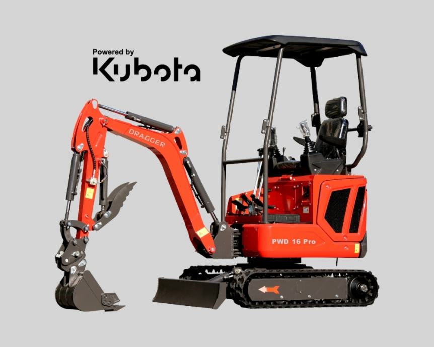 Uz težinu od 1550 – 1650 kg (ovisno o opremi) serijski dolazi sa KUBOTA D902 – Stage V normama, PWD 16 se pokazuje izuzetno sofisticiranim strojem za profesionalne korisnike koji svakodnevno rade u teškim uvjetima. Kamen razbija težina, a ne snaga pa je stoga PWD 16 solidan korak naprijed u performansama od PWD 12. Veća težina stroja te ojačani hidraulički sustav sa 2 pumpe omogućuje korištenje težeg hidrauličkog čekića bez kompromisa na stabilnost u radu ili preciznost pri kopanju.