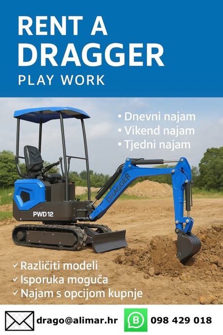 Ponudu možete dobiti preko naše WEB Trgovina na www.dragger.hr. Odaberite svoj model, odaberite alate, odaberite napredne funkcije u opisu ponude i pošaljite svoju narudžbu. Po ponudi plačate 30% akontacije kako bi se pokrenula proizvodnja– ostatak prije preuzimanja (Franko Zadar). Dostava na adresu dostupna uz nadoplatu. Jamstvo 1 godina, uz mogućnost produljenja po dogovoru. Istaknuta cijena na oglasu sadržava PDV. Izdajemo R1 račun za uplaćeni avans.