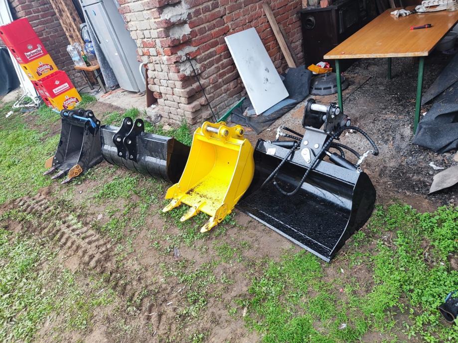 Uz bager idu korpe 30/60/100 + nagibna od 80 cm (nikad korištena) + svrdlo za rupe (nikad korišteno).