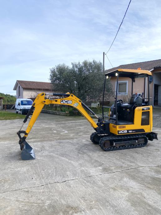 Prodajem mini bager JCB 1,6 tona. Stroj je odlično očuvan, godište je 2022. i ima samo 904 radna sata. Bager ima proširive gusjenice te brzu vožnju.