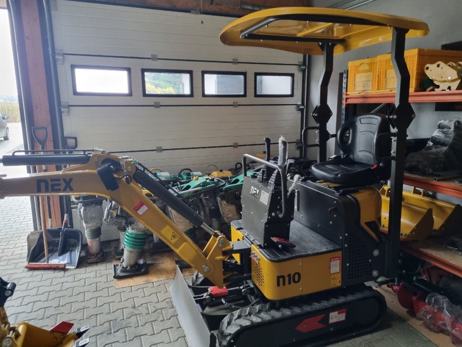 NEX N10 je robustan mini bager dizajniran za temelje, ograde, veze i vrtne radove. Mala veličina i jednostavan dizajn čine uređaj lakim za korištenje i servisiranje. Kompaktan dizajn i sklopivi krov omogućuju transport bagera u utovarnom prostoru standardnog kombija do 3,5t.