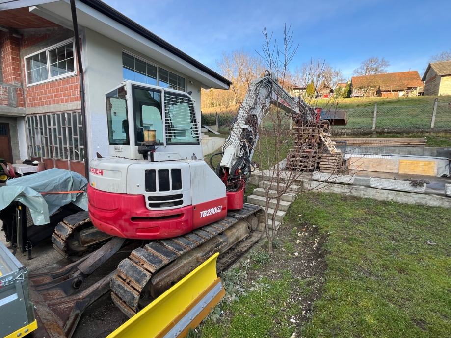 Prodajem mini bager Takeuchi 280FR iz 2017. godine s 7630 radnih sati. Stroj je opremljen motorom Yanmar snage 52 kW, a ukupna težina iznosi 8500 kg. Klima, centralno podmazivanje, brza spojka, pumpa za točenje goriva, planirka, metalne gusjenice sa gumenim umecima.